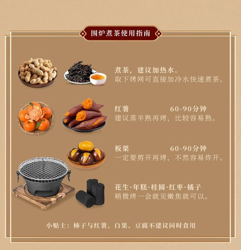 北极狼围炉煮茶家用庭院室内烤火盆煮茶烧水冬季户外露营烧烤取暖 59cm围炉5斤碳5件套