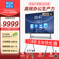 京东方(BOE)会议平板一体机 86英寸触控教学培训电子白板 4K视频会议显示屏 展厅商用电视移动大屏幕 AI交互BOE智慧屏 【标配】86英寸E4+投屏器+移动推车 一站式解决方案 咨询客服享低价