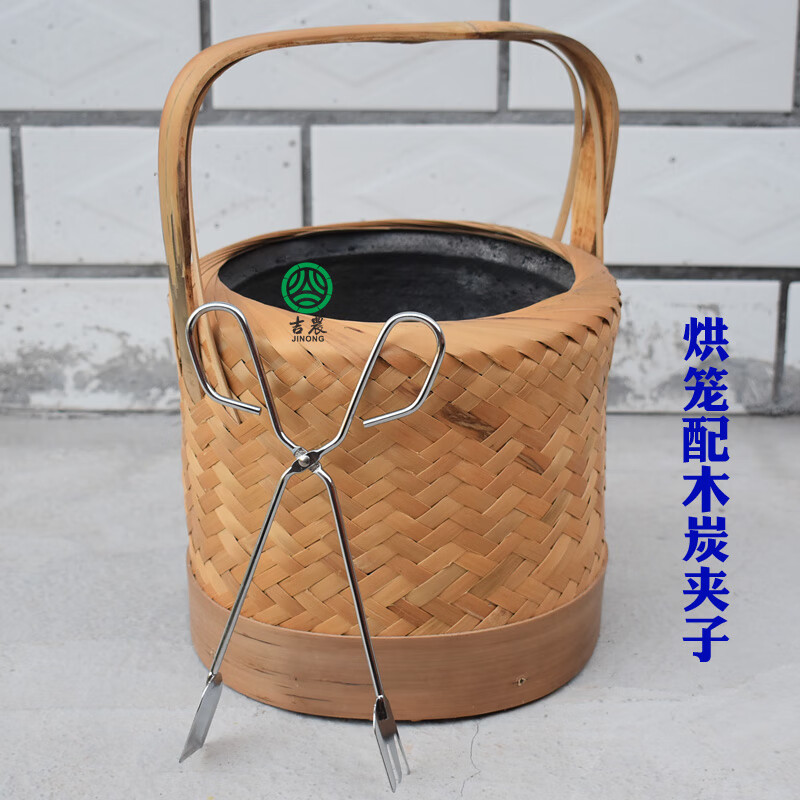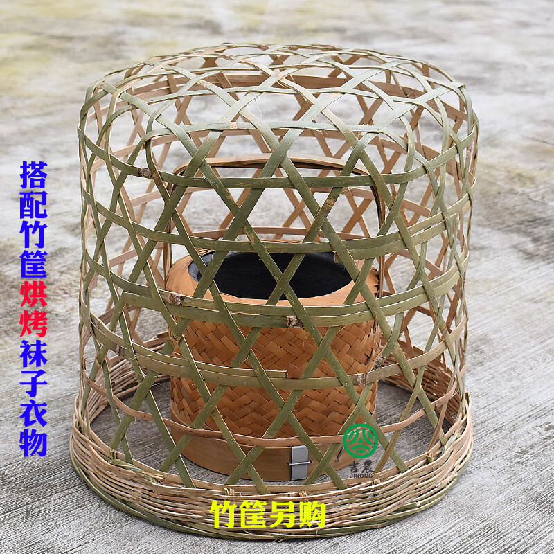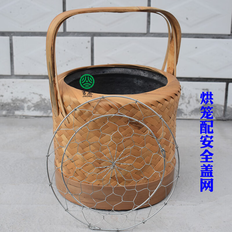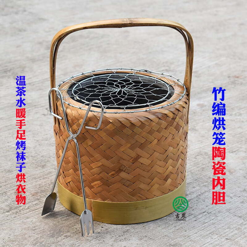 合武竹编烘笼手工烤笼取暖灰火笼烤火罩手提暖手宝新款式烤笼陶瓷内胆 烤笼+安全盖网+卫生夹子