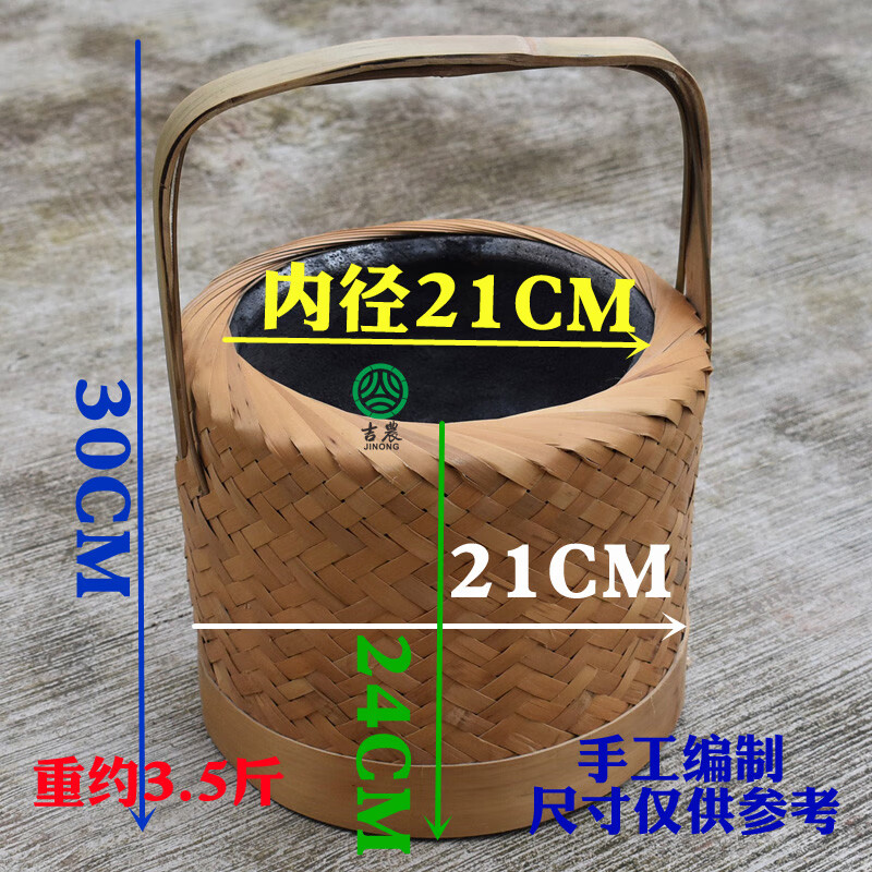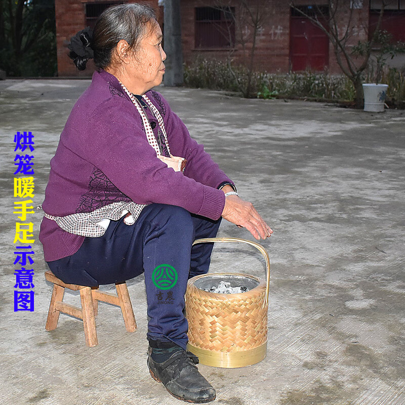 妙普乐四川烘笼竹编碳火盆火篮烧炭取暖怀炉烘笼家用老人手提烘笼烤火笼 竹柄竹编烤火篮
