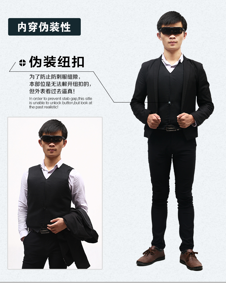 翰阳 轻便隐形商务软质衣防刺服马甲背心防身防刀用品保安防护装备 商务款马甲防刺服(纤维内胆)