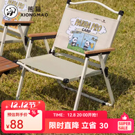山系熊猫骆驼联名克米特椅折叠椅便携式露营野餐椅装备钓鱼靠背凳子沙滩椅 米白逗趣