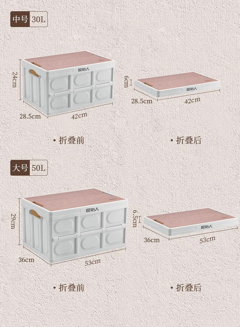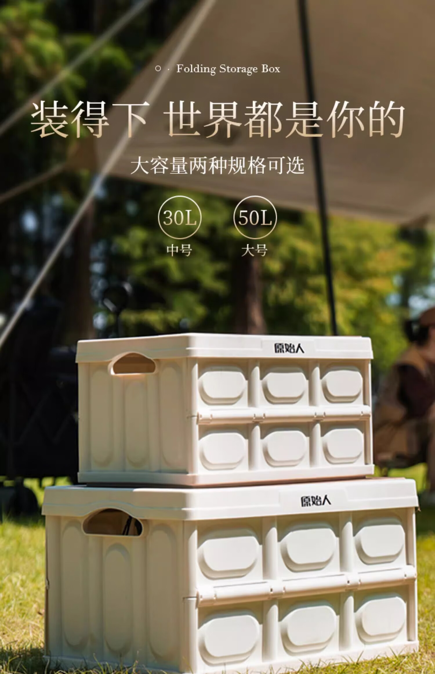 原始人户外露营折叠箱收纳储物置物箱子整理野营用品便携式折叠桌 【中号】30L