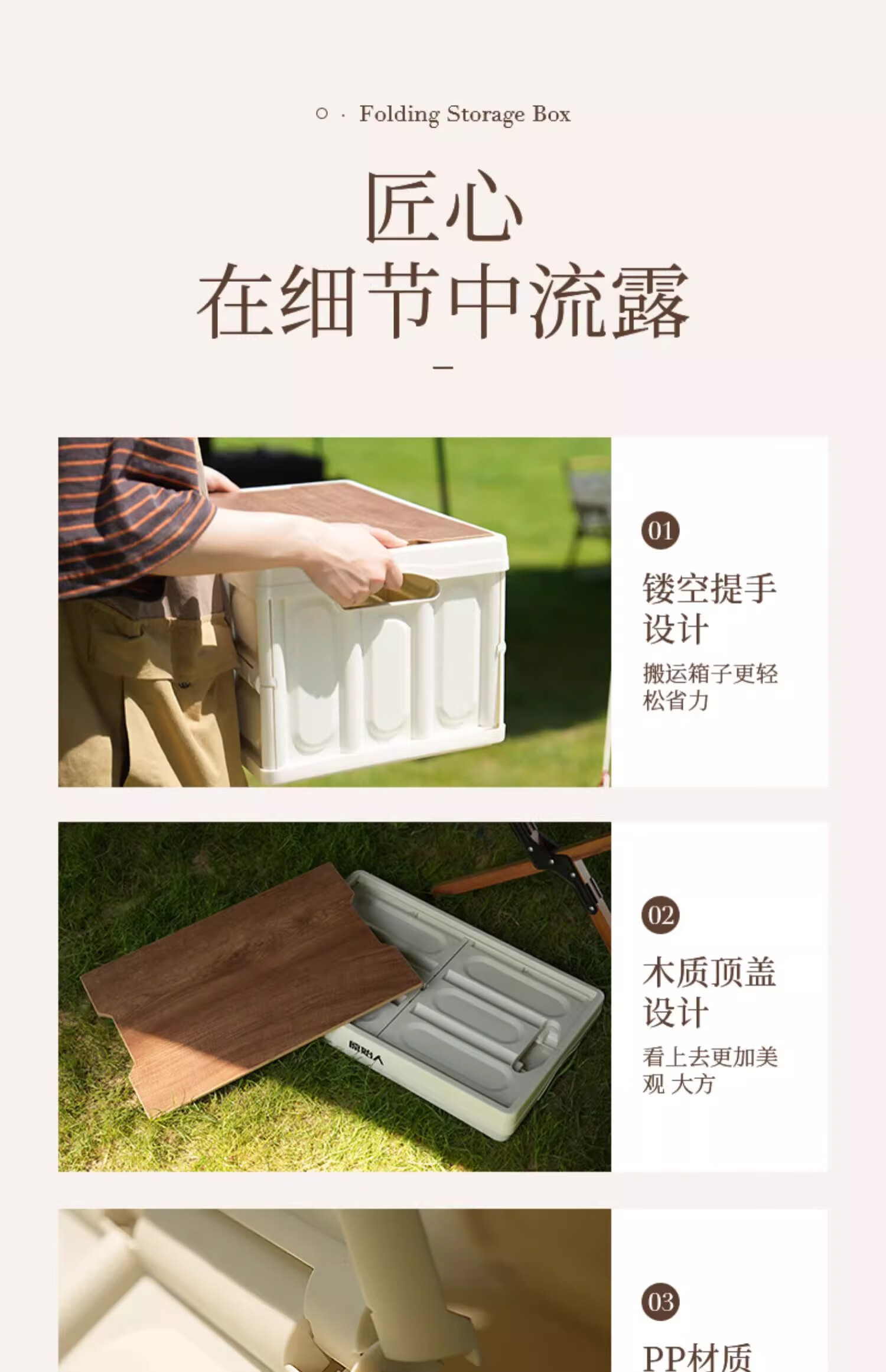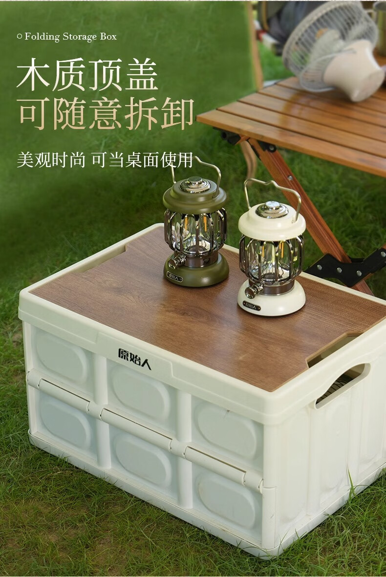 原始人户外露营收纳箱车载箱桌一体野营大容量两用开口后备箱整理 35L卡其色【大容量_可侧开_餸木