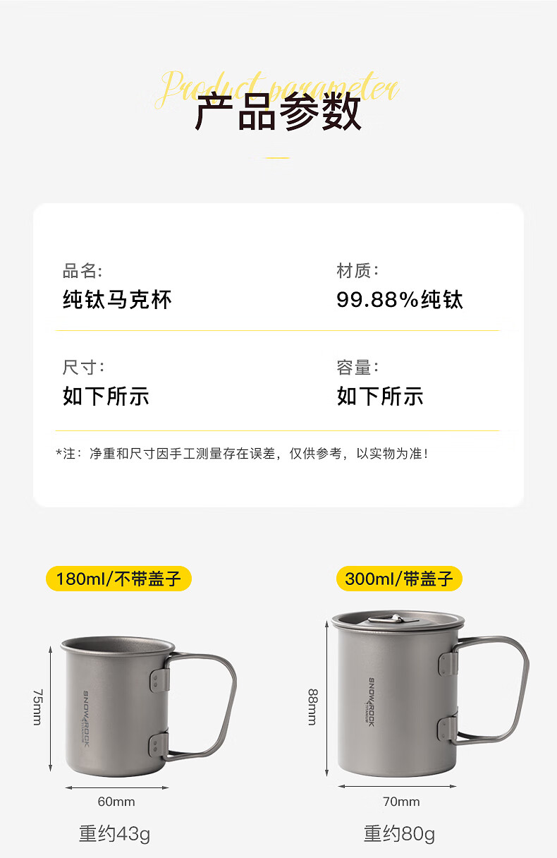 SNOW ROCK【源头厂家直销】英迪户外纯钛水 300ml钛杯[带盖]