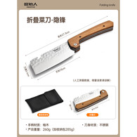 原始人折叠菜刀露营便携式刀具家用切片切菜切肉户外野餐不锈钢超快锋利 褐色【柚木手柄 赠收纳袋】