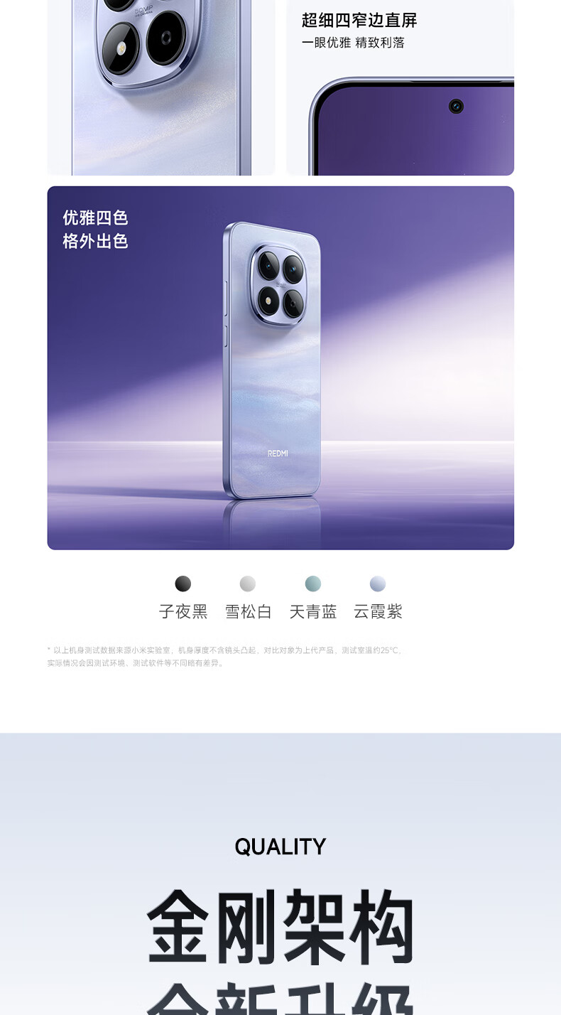 小米(MI)REDMI 红米Note15 Pro 5G手机 新品上市 红米 5G手机 新一代小金刚 云霞紫 12GB+256GB