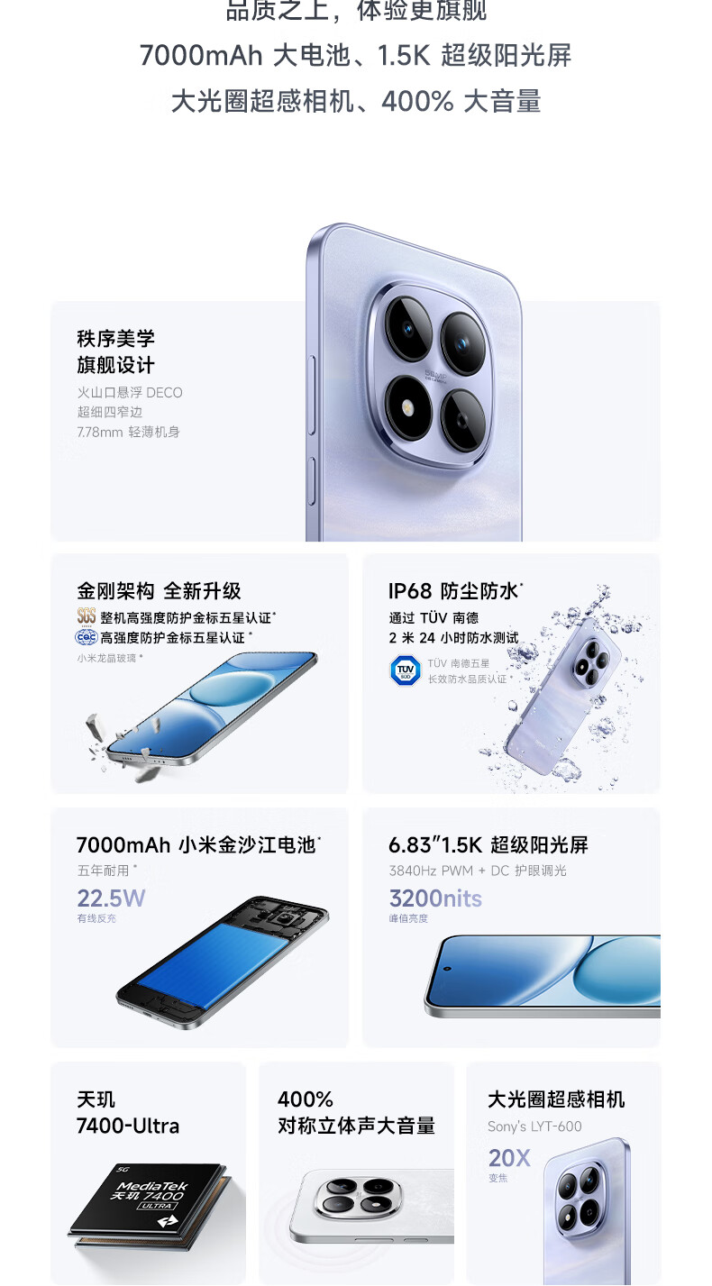 小米(MI)红米note15Pro 5G手机【国家补贴】大电池 快充 新机 游戏学生 天青蓝 12GB+256GB 官方标配