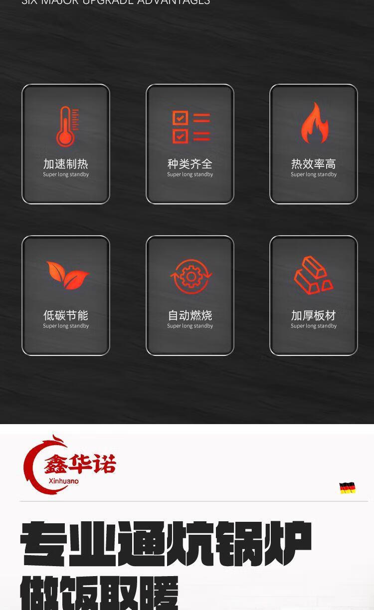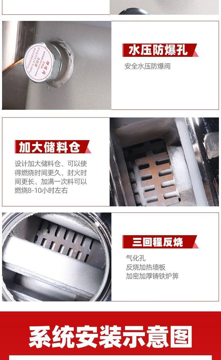 取暖炉家用农村室内柴煤两用地暖暖气通炕锅炉水循环带暖气采暖炉 加厚200型
