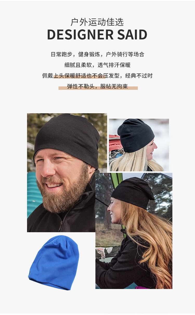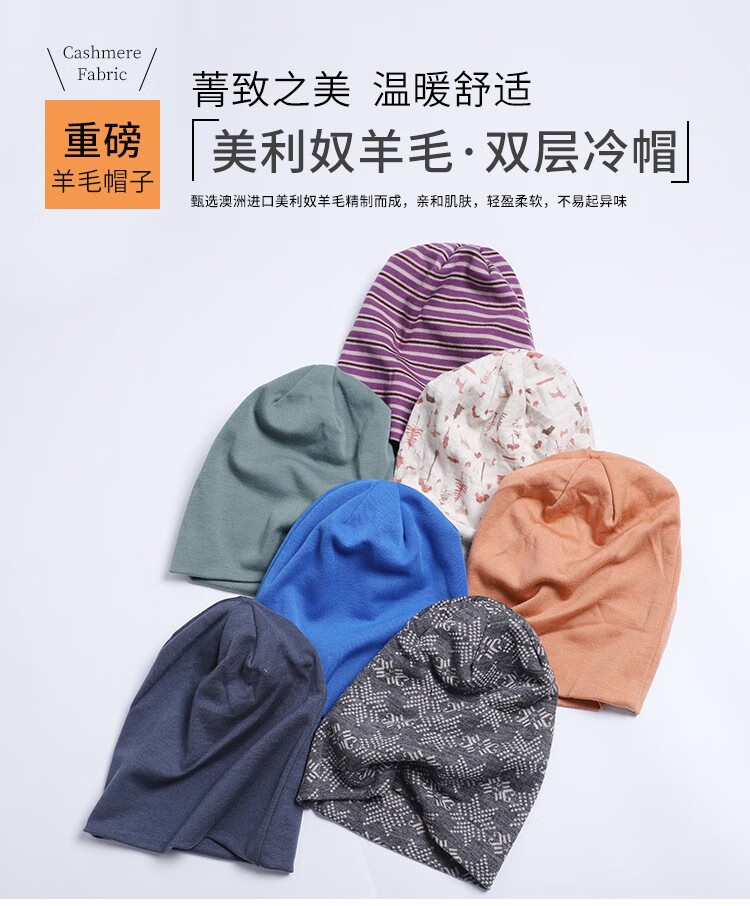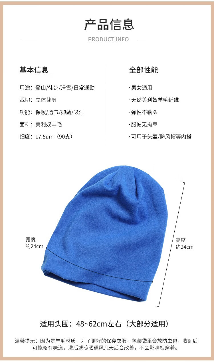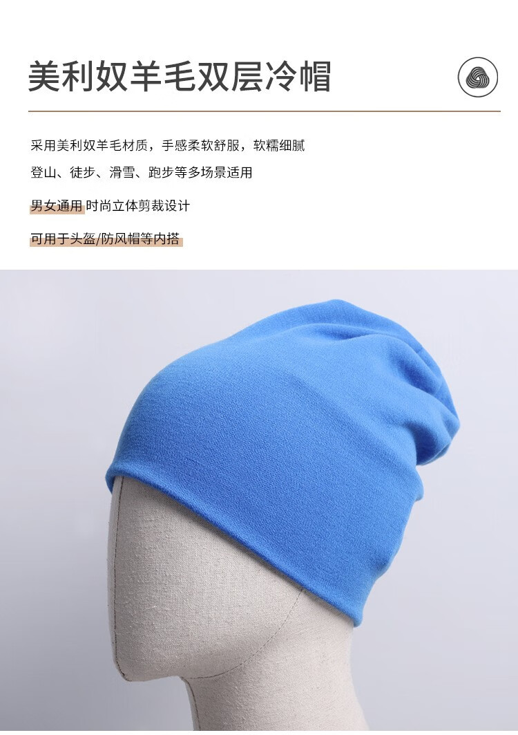 oeny美利奴羊毛帽女户外双层针织帽男美丽诺冷帽运动滑雪保暖帽子 浅冰蓝50羊毛50天丝