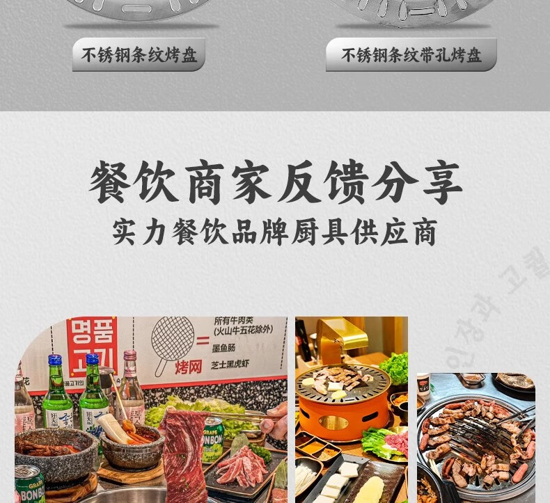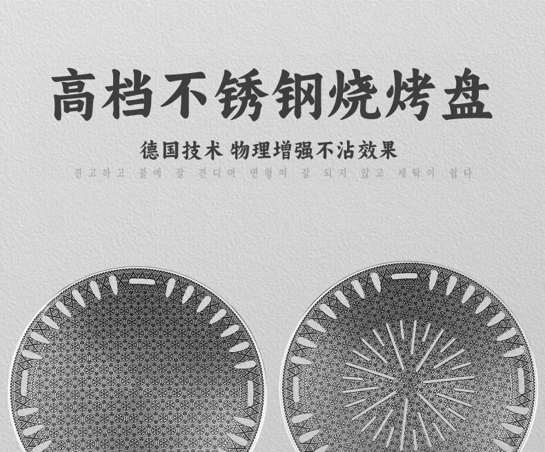 繁巷户外韩式电陶炉光波炉卡式不粘烤肉盘烧烤盘圆形家用商用 不锈钢烤盘