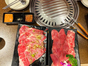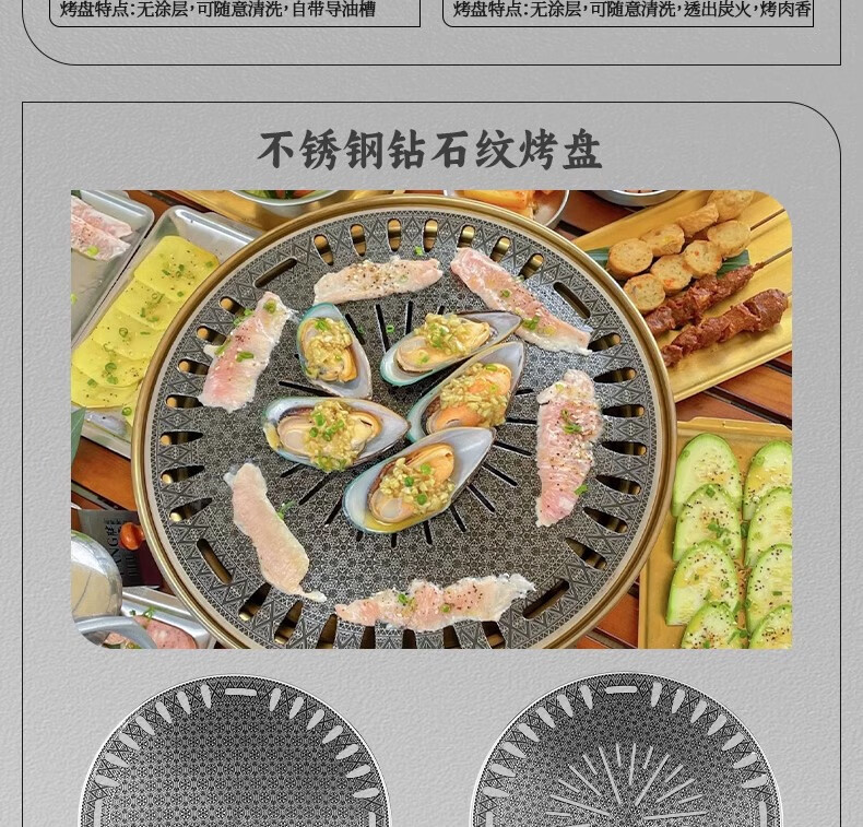 买的不锈钢烤盘导热很快 炭火香味很足 厚度也够