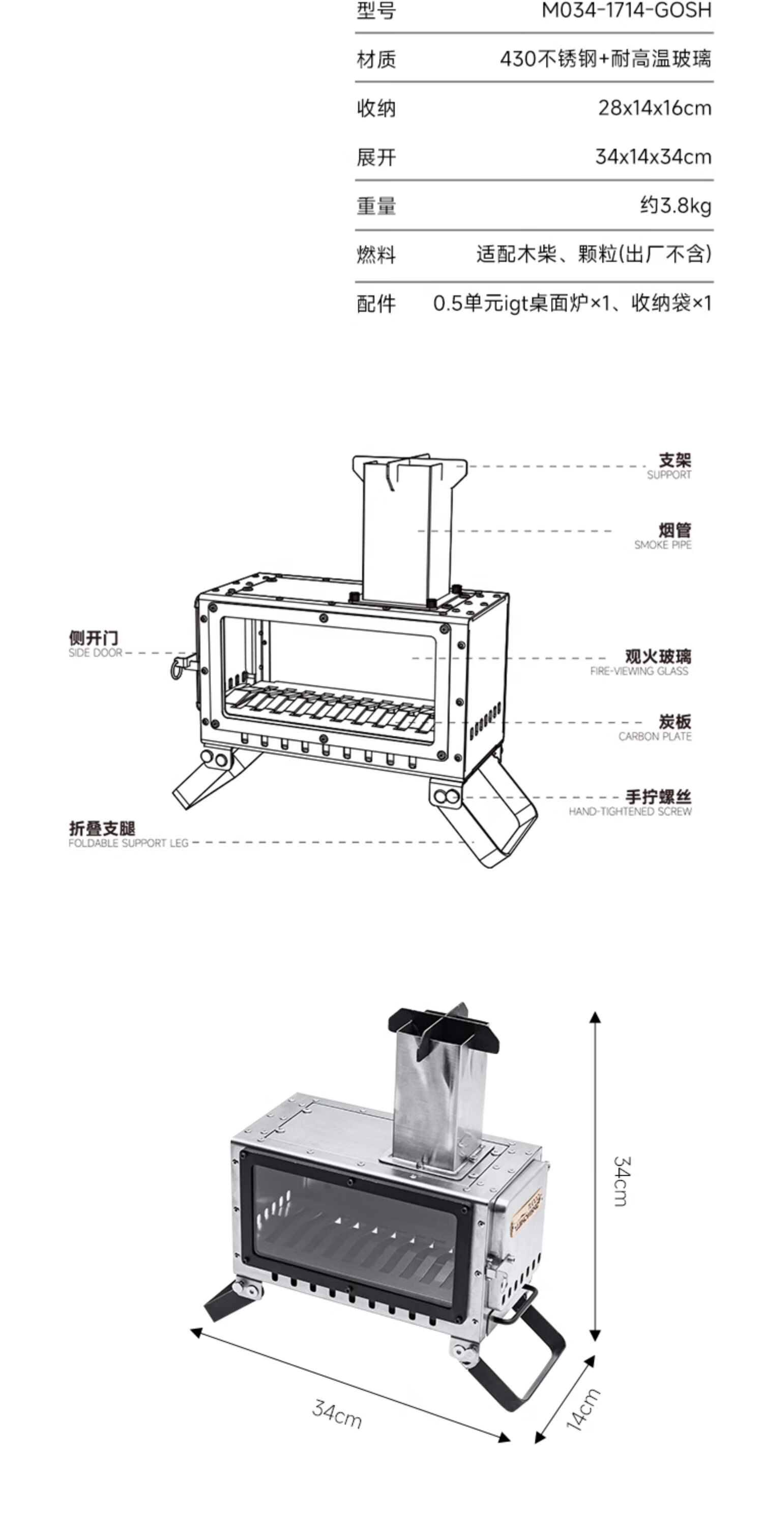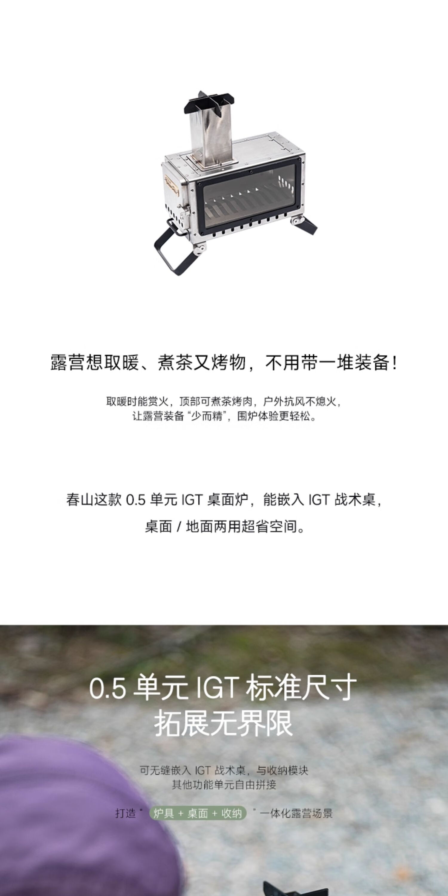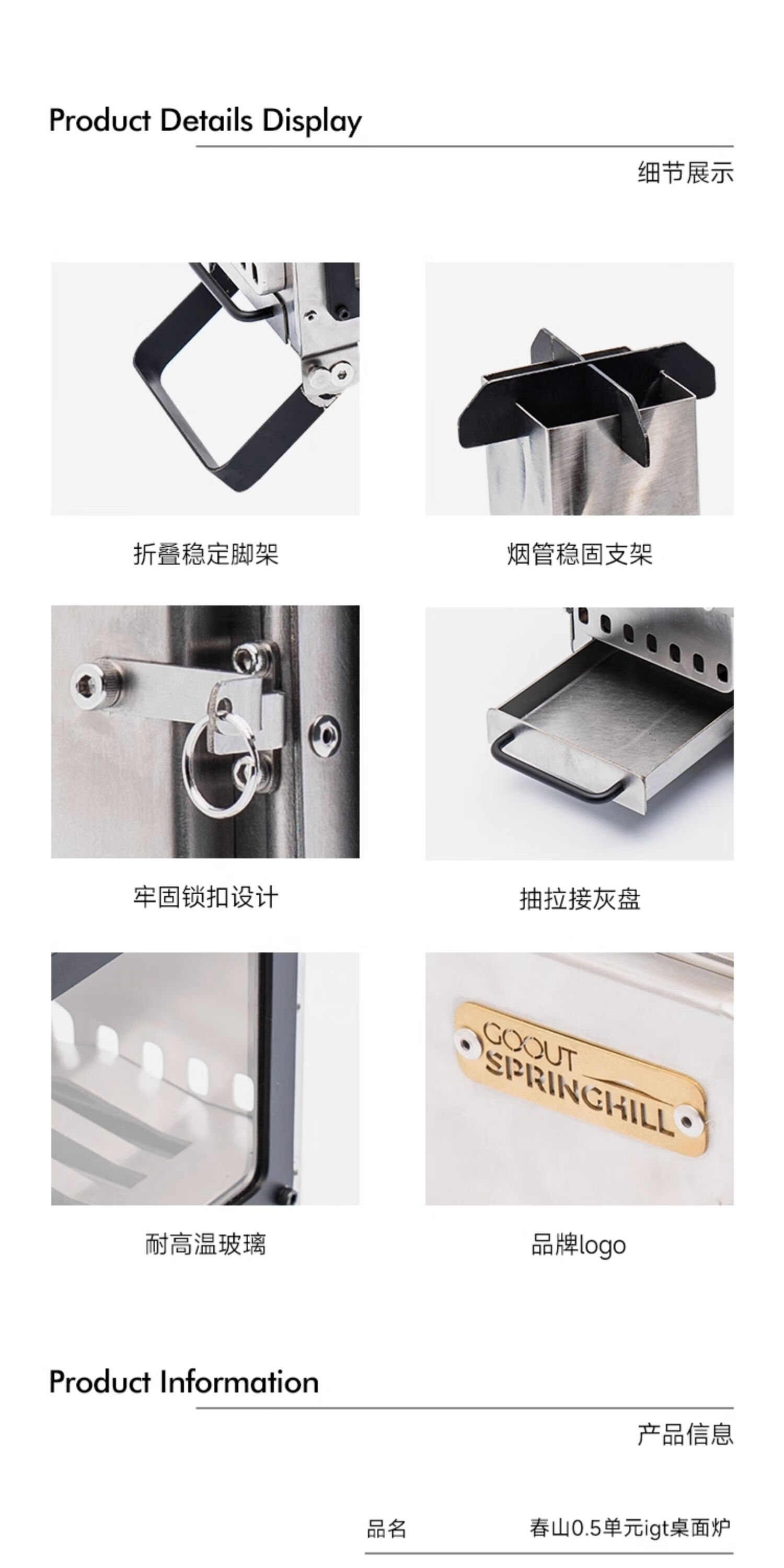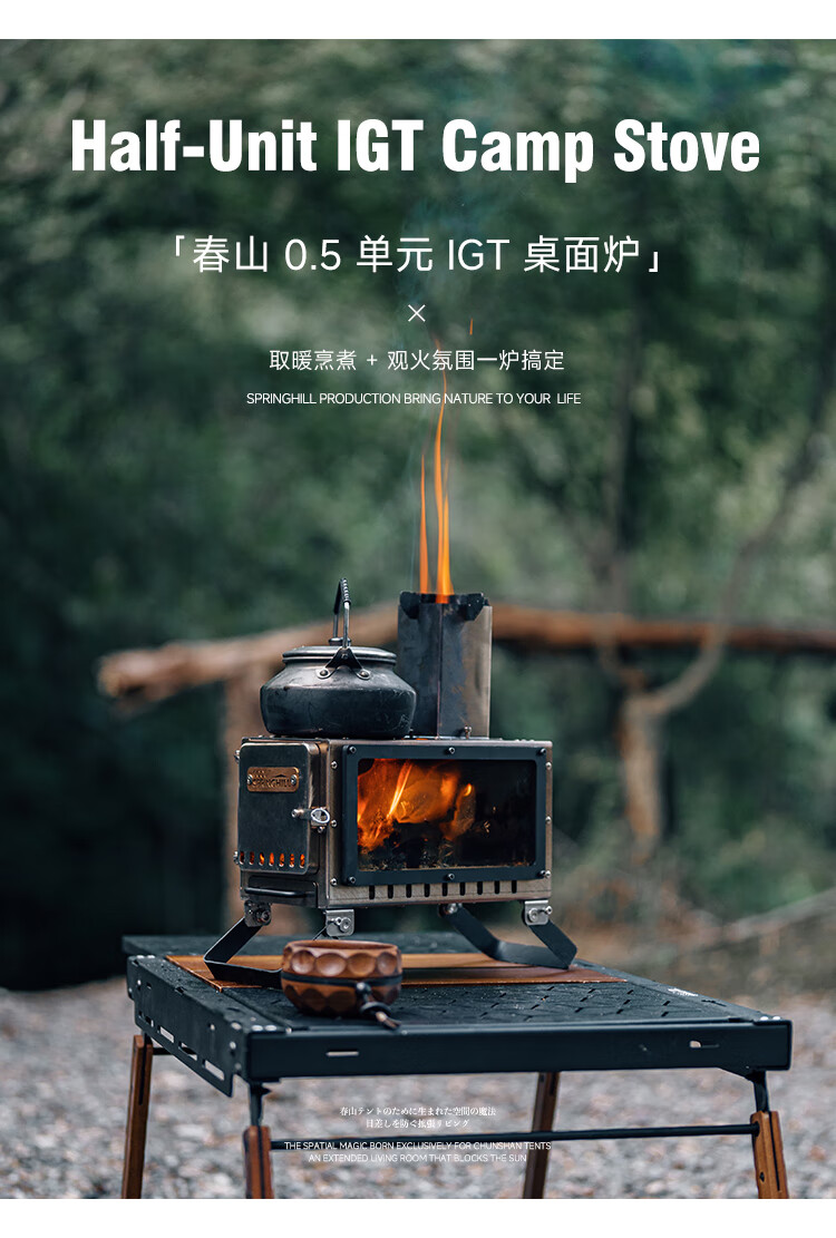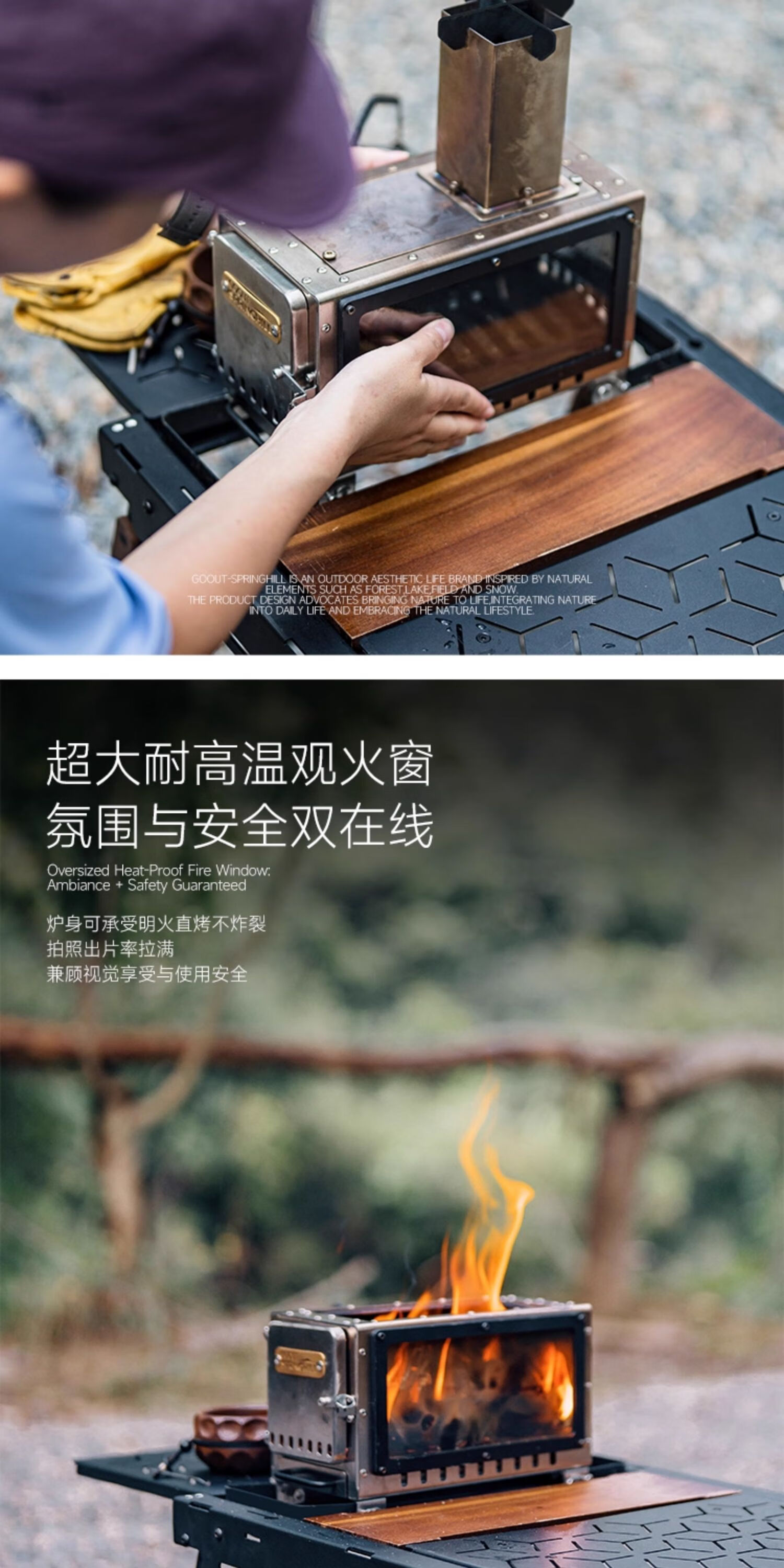 GOOUT SPRINGHILL春山0.5单元igt桌面炉户外露营柴火炉小型便携折叠观火烧水取暖炉 Mini观火壁炉