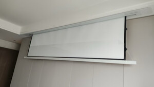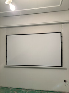 今天师傅安装好了,看了看效果!好看!嵌入式的幕布很简洁,看的时候打开,不看收回去,不占位置,也不会长时间吊着积灰,总的来说!我很满意!投影效果还不错,画质清晰,强光线下,依旧看的很清楚,满意!哈哈