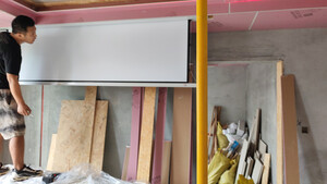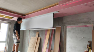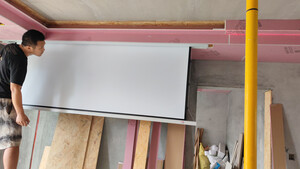 装修准备装幕布,研究了好久选了鲸米,嵌入式、悬浮、拉线,想要的都有啦!吊顶之前先安装上了,试了一下感觉不错,期待吊顶之后的效果!