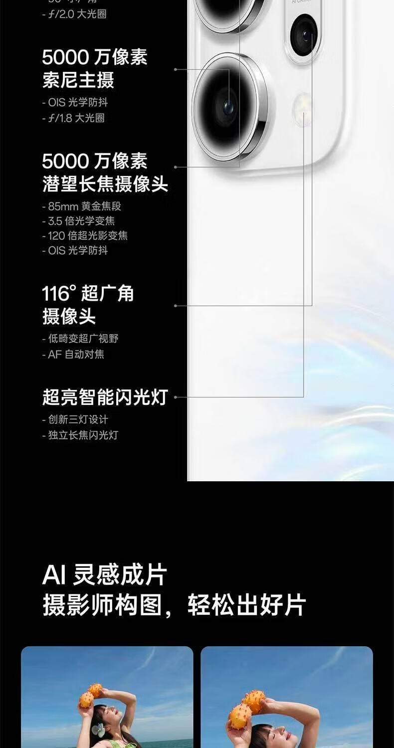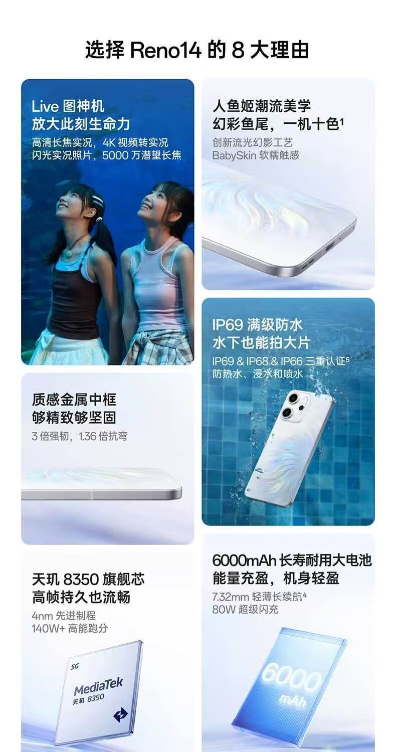 OPPOReno 14 高清长焦实况照片 Live图 5G展机 超美小直屏智能手机 人鱼姬 16GB+1TB 单机+原装快充+店保一年