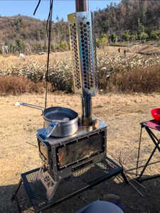 东西不错,轻便但扎实,烟囱加了3节,引火很好,火烧的很旺,隔着玻璃观火感觉不错。烧过一次后,玻璃没有变黑,顶部和下面几节烟囱已经有一大块烧成漂亮的蓝色了。