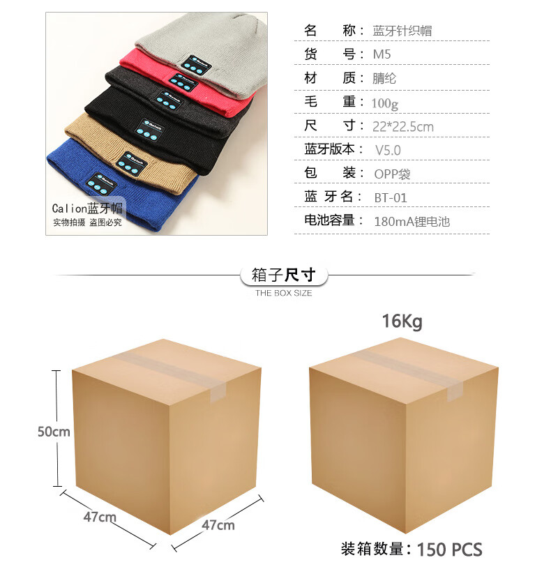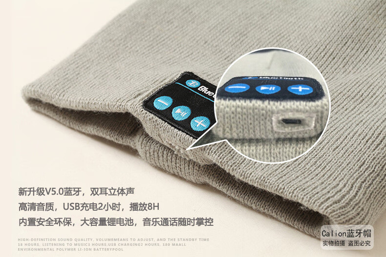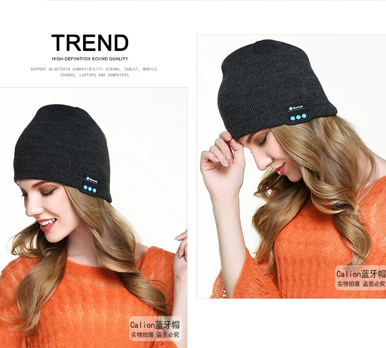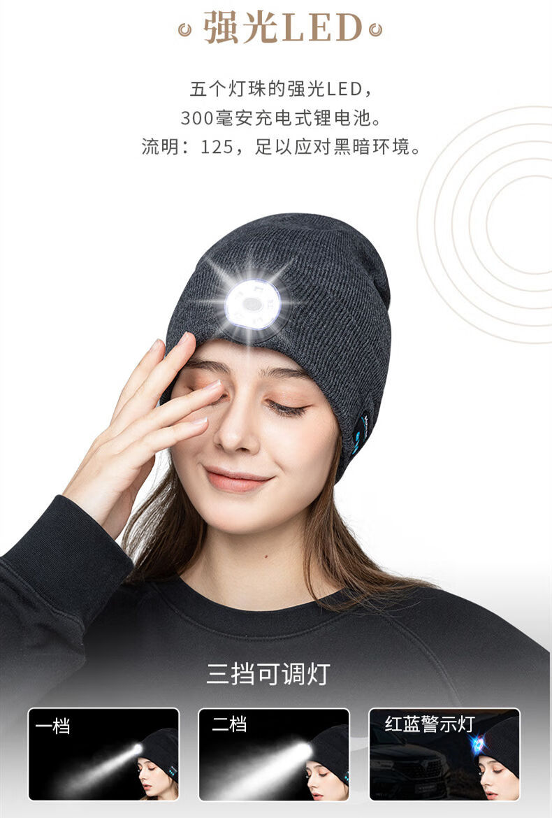 头戴式无线蓝牙帽子V5.0通话音乐立体声针织智能耳机帽骑行保暖帽 Z3-黑色 标配