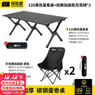 探险者户外折叠椅月亮椅便携式露营椅子钓鱼椅高靠背加厚躺椅家用小凳子 黑色高靠背椅*2+120蛋卷桌【一桌两椅】