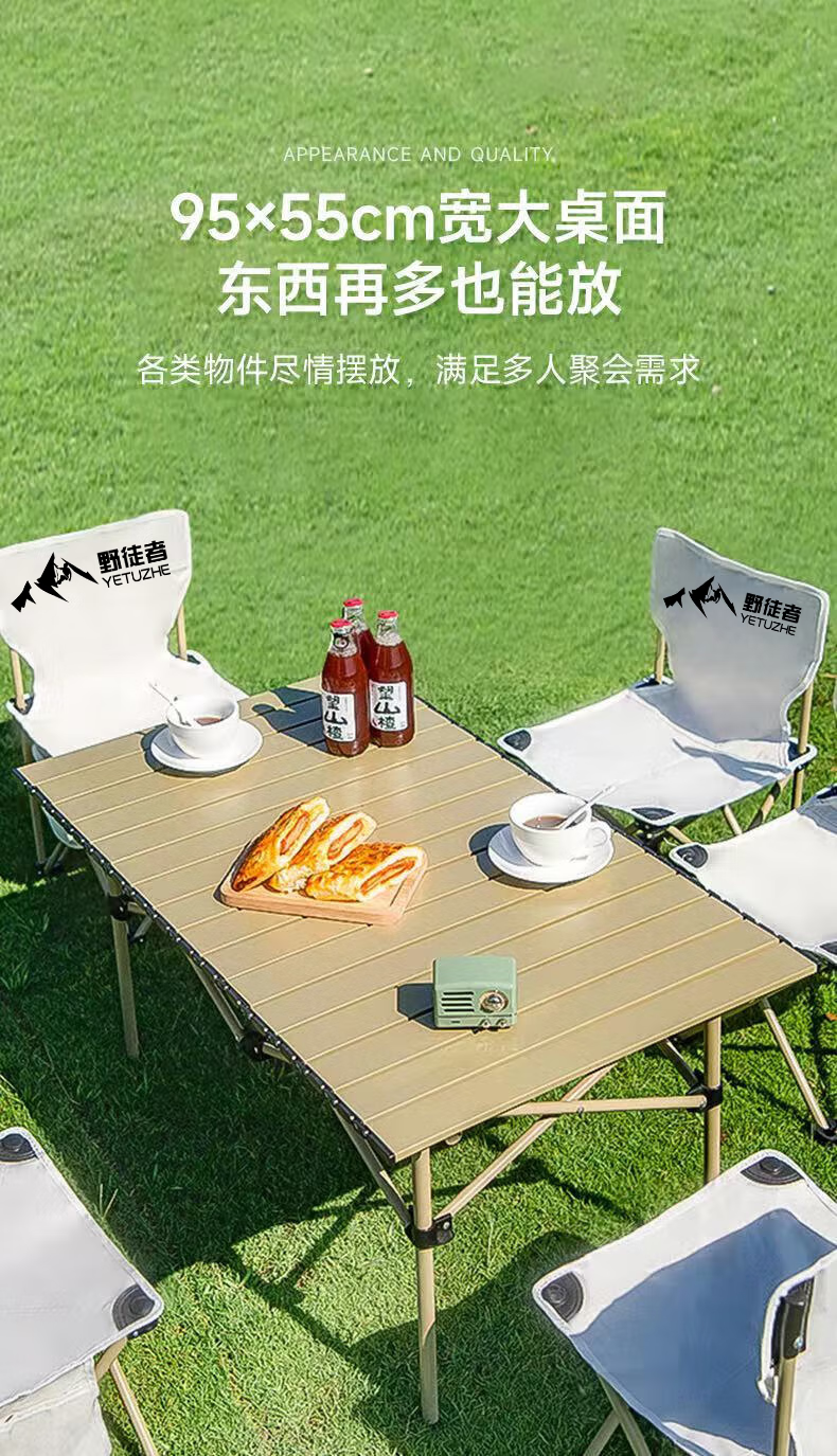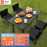 顺优露营桌椅户外折叠桌子蛋卷桌便携野餐装备用品椅子套装野餐桌椅 95cm【长桌+4椅】石墨黑