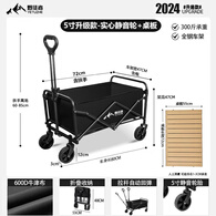 野徒者露营车户外推车野餐车儿童可躺露营装备折叠摆摊营地车小买菜车 曜石黑-5寸万向轮+72桌板 升级加粗全钢车架