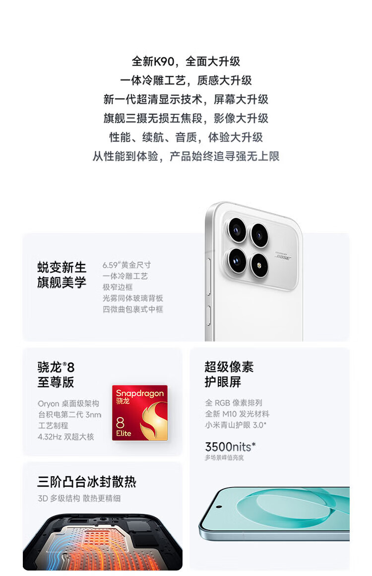 收到K90就迫不及待用上了,果然没让我失望!背板美的不像话,太漂亮了!手感一流。性能强劲,运行流畅不卡顿,澎湃os3使用无敌顶!无论是办公还是娱乐,体验感都直接拉满。再说音质,手机是老婆用的,现在她在旁边刷抖音,就像旁边有个小音响,好不夸张,真的太值了!舒服啊!国补后更香!!超香plus
