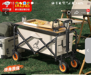 Aoran户外露营车折叠推车野营车营地车露营推车户外手推摆摊野餐车快递 无刹车静音万向轮+后开模式