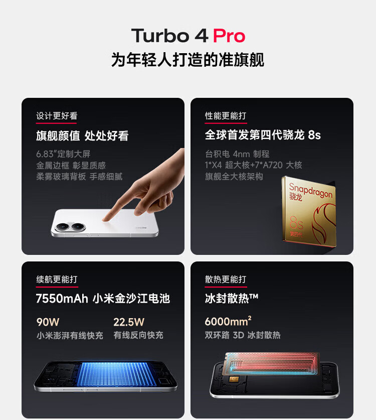小米(MI)REDMI Turbo 4 Pro 【分期免息白条可选】第四代骁龙8s 7550mAh长续航 小米红米5G手机 黑色 12GB+256GB 官方标配