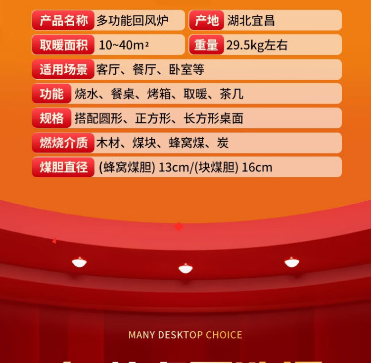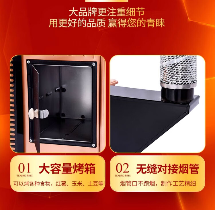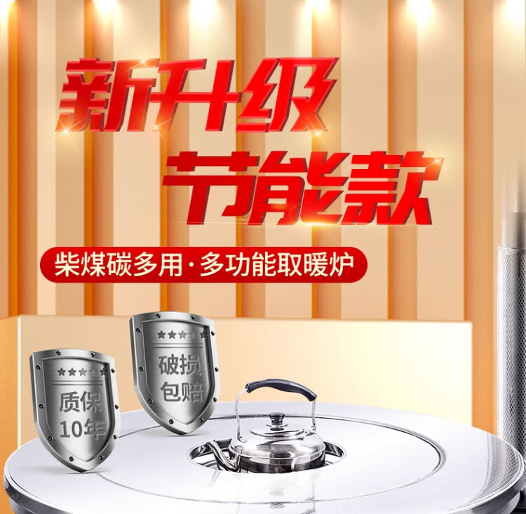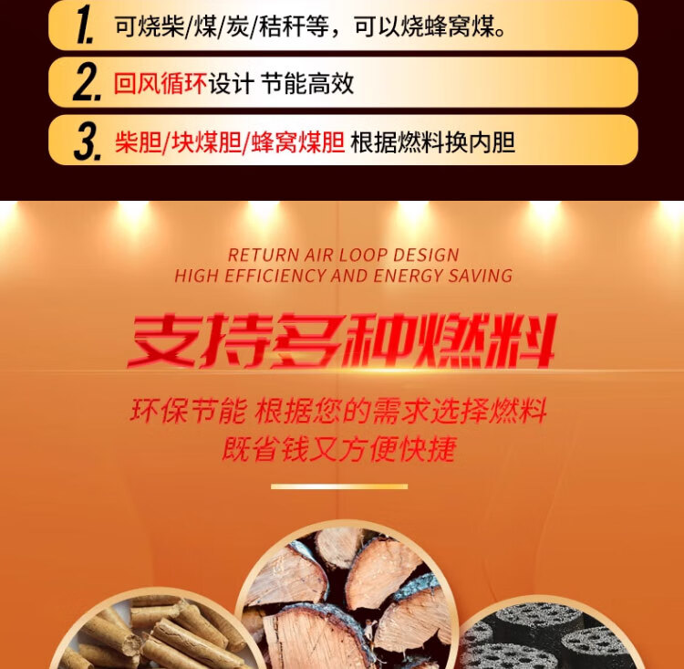 好厨官农村取暖炉冬季家用回风炉柴火灶室内柴煤两用无烟节能柴火采暖炉 1米不锈钢丨单桌面丨柴煤两用