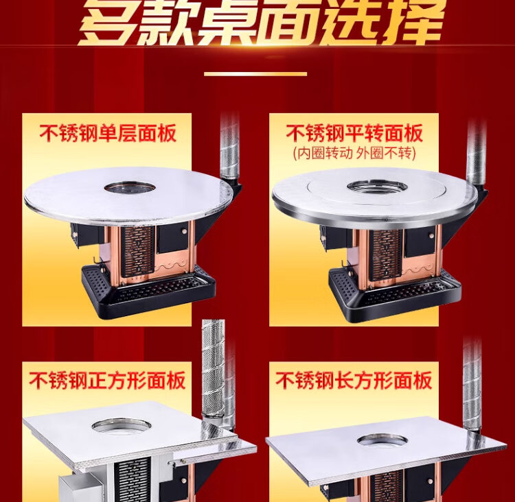 满钵取暖炉柴火灶烤火炉柴煤两用多功能回风炉室内无烟农村家用 0.8米 不锈钢单桌面 煤炉