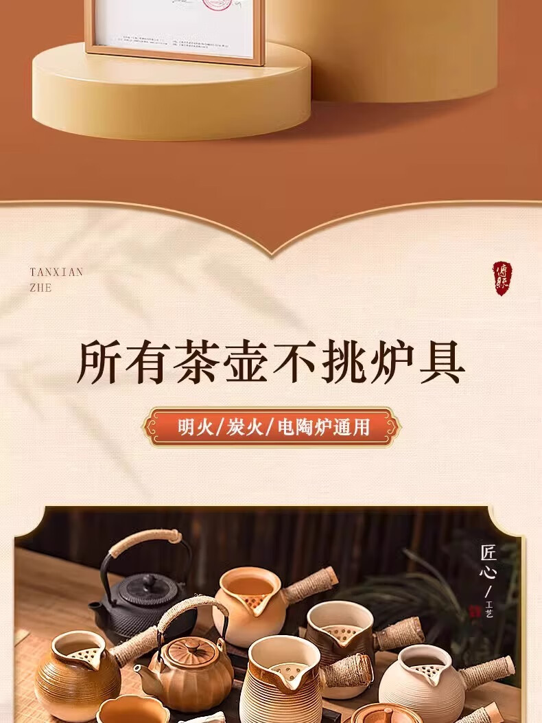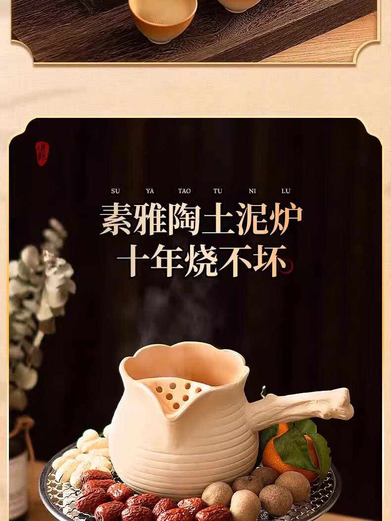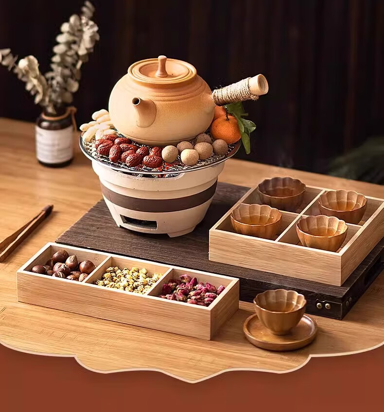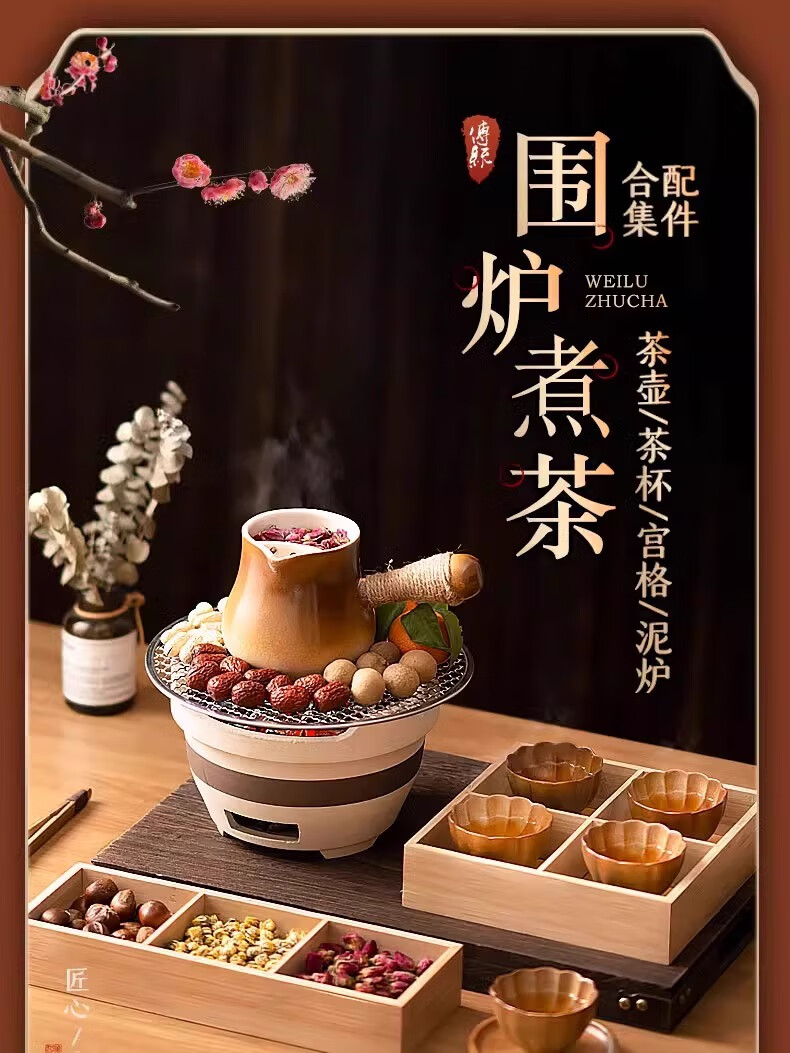 探险者围炉煮茶套装罐罐壶新款陶瓷烤奶茶罐器具全套陶炉木炭无烟碳 素烧杯*4