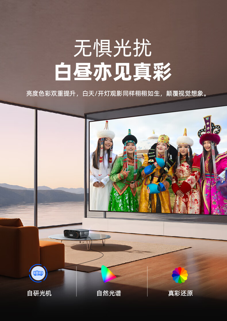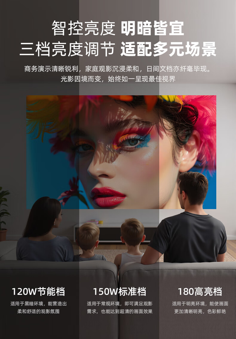 对比了几个差不多2-3千多的产品,确定是留下了这款,画质和亮度都对比的很明显,这个是最好的,亮度比其他高一倍,而且几秒钟就校对好了画面和对焦,其他那几个牌子要调好久,还自带双喇叭,太满意了!
