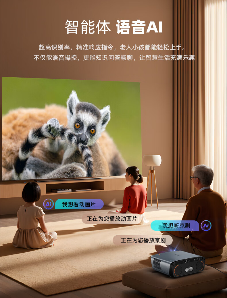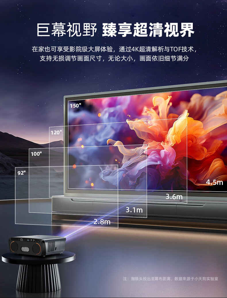 小天狗【8K解码+上门安装】投影仪家用4k超高清家庭影院白天投影仪加幕布一体投影仪白墙直投酒店办公 高亮版【超高亮度+自动对焦+AI声控】 标配:投影仪+支架+100寸抗光幕布(免打孔)