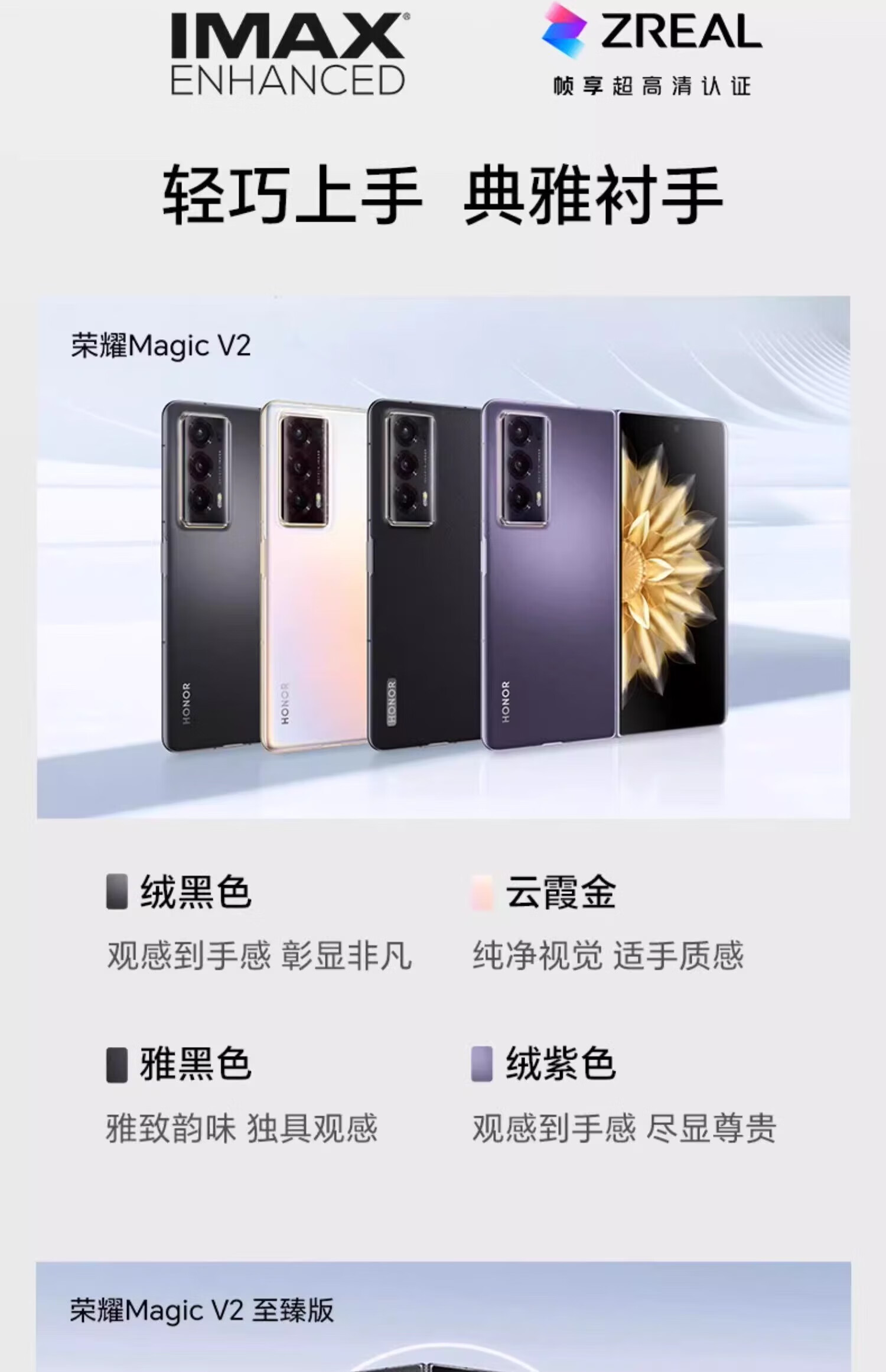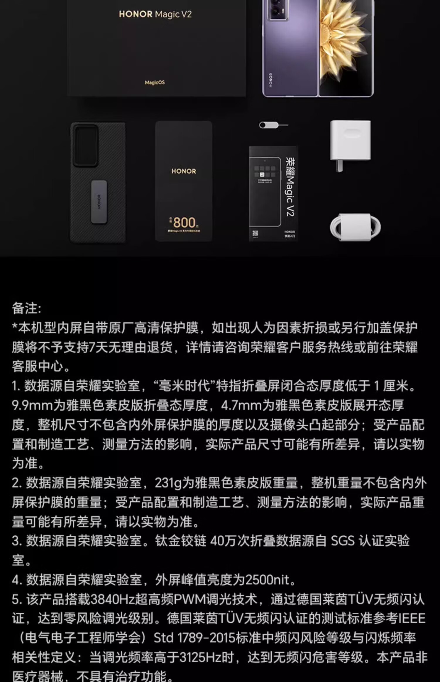 荣耀(HONOR)Magic V2折叠屏手机超轻薄设计铰链护眼双屏手机智能手机 绒紫色 16G+512G 正品保障|权益已启用|品质无忧