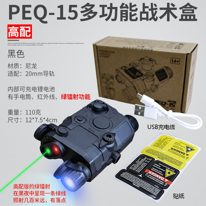 peq-15战术电池盒倍镜红点全息红外线激光瞄准器战术手电筒可调节 塑料四变红点(带十字)不可调