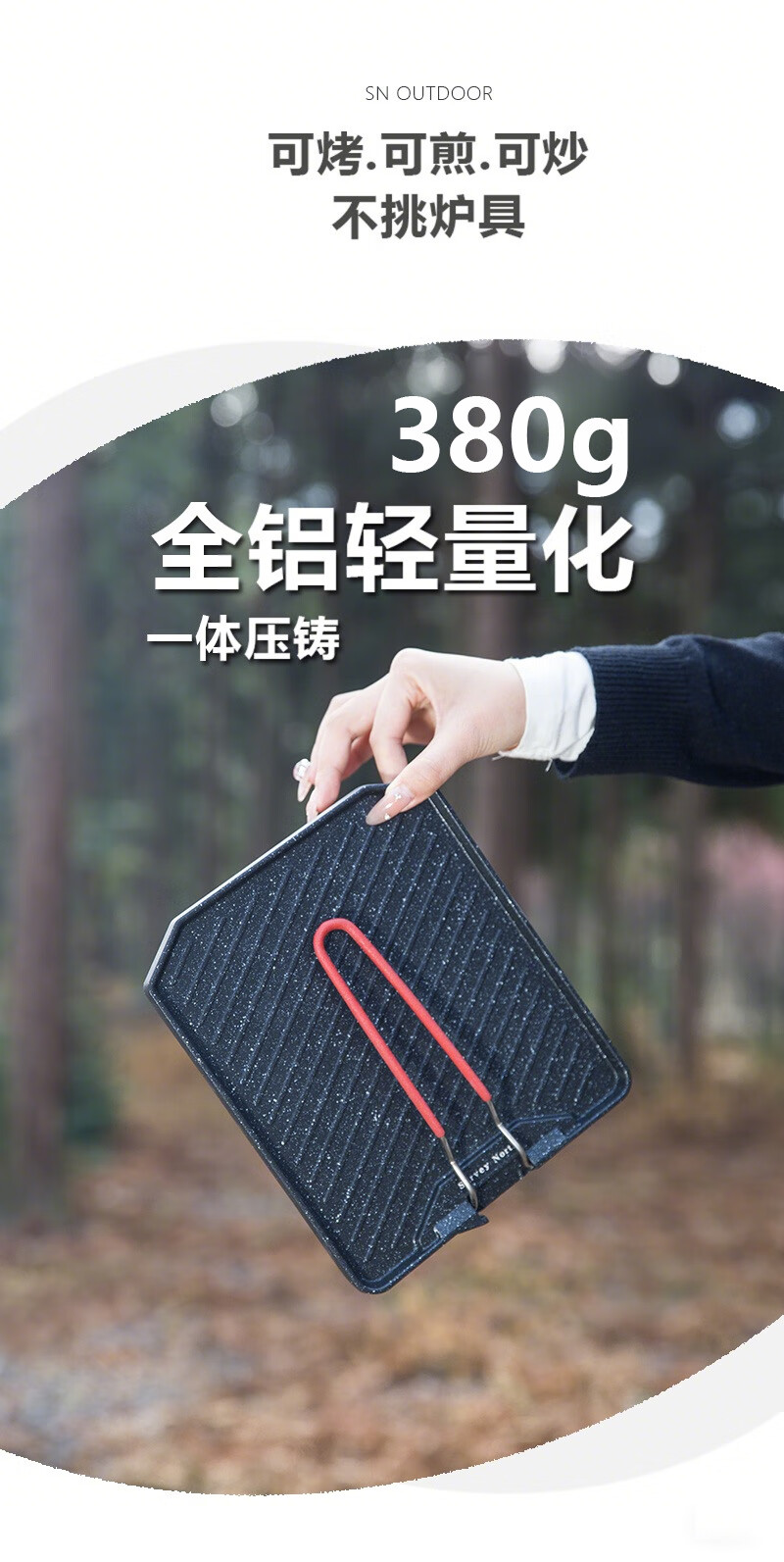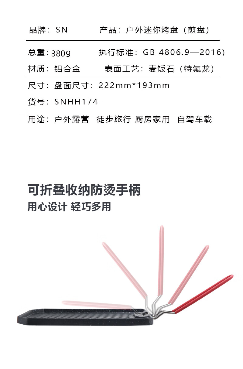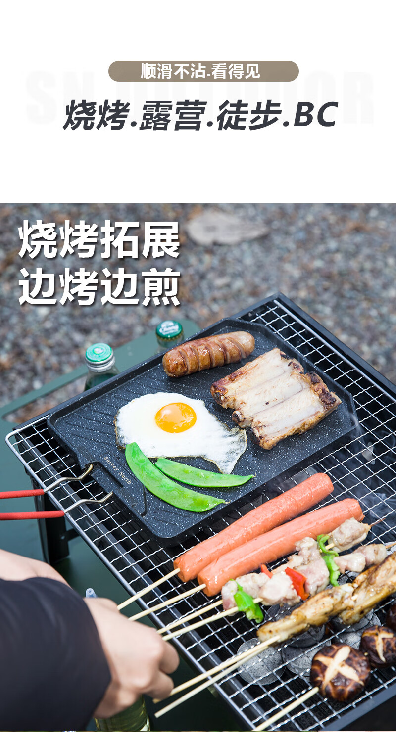 SURVEY NORTH 北部勘察野营露营烧烤铁板烧便携迷你户外烤盘不粘盘超耐用不变形折叠烤盘 折叠迷你麦饭石烤盘【食品级】