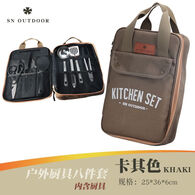SURVEY NORTH 北部勘察户外野营露营便携收纳厨具包野炊厨具收纳包套装 卡其色八件套(含厨具)