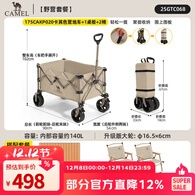 CAMEL户外聚拢露营车野餐儿童可躺营地车手推车拉车可折叠旅行车 200L ,卡其色聚拢车+可折叠餐桌板+克米特椅*2