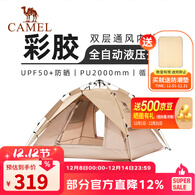 骆驼【果冻彩胶】帐篷户外野营便携过夜3秒速开双层自动帐篷装备 流沙金/奶酪色,A1S3NA111A5