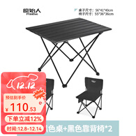 原始人(The Primitive) 户外折叠椅子钓鱼凳便携式露营野营野餐小马扎轻美术生休闲 黑色轻便铝合金桌+大号黑椅*2