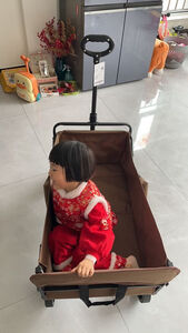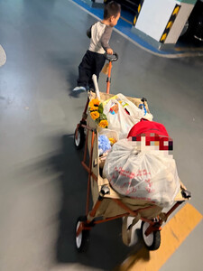 容量真的很大,轻轻松松一车全装下了。就是缺个刹车,不然就更好了。打开后给小孩睡觉正好。