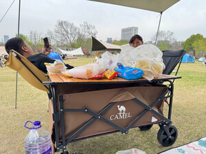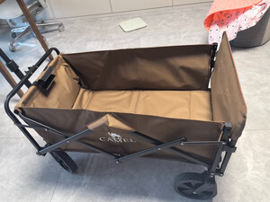 骆驼这款露营营地车非常好用,户外时拉东西非常轻便,轮子顺滑,折叠起来也非常轻松,不占地。容量也非常大。配了桌板,还可以当桌子用
