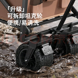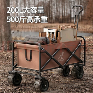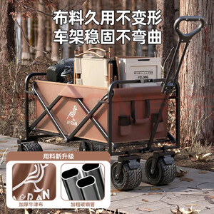 Aoran露营推车可折叠户外手推野餐车营地拖车拉杆车桌板野营 【咖色150L】5寸平地窄轮