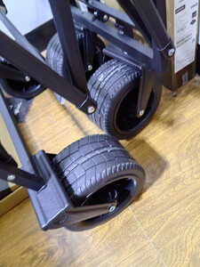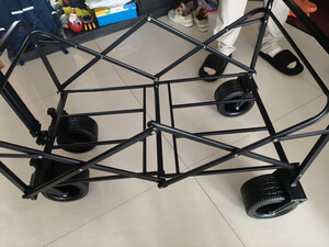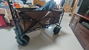 露营拉车收到货打开包装给我一个惊喜,拉车尺寸挺大的,骨架钢管都是加厚的,感觉拉三四百斤一点问题没有,轮子特别宽,车子整体很厚实,细节做工精致,真的超乎意外,没想到质量这么好,车子挺大的,可以拉好多东西,出去露营玩特别好,满意,待使用后再来评价。