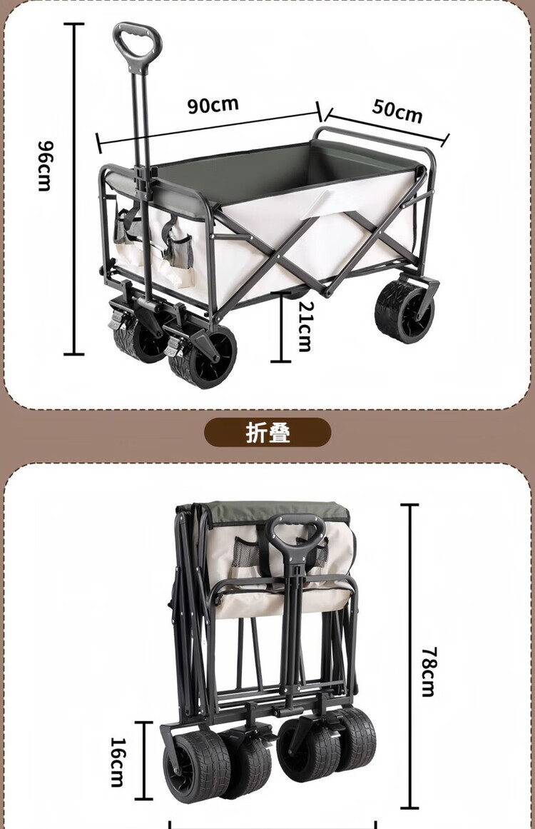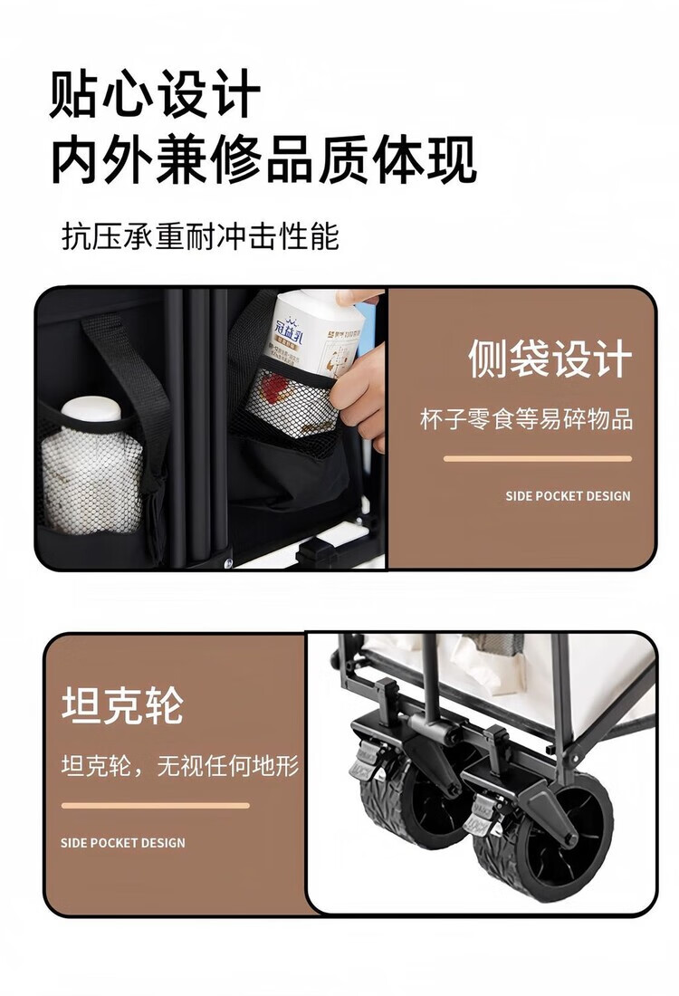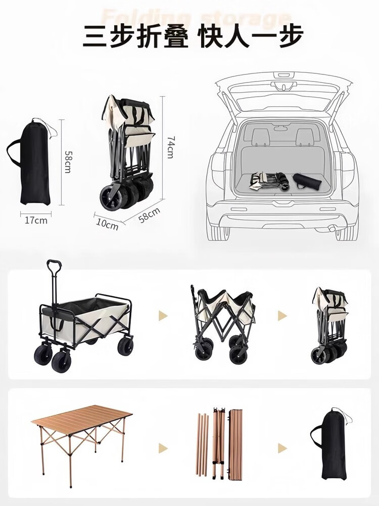 柏潮露营推车折叠小推车万能摆摊野餐超大便携越野户外营地拉杆野营车 【升级露营车】2025新款 【工厂直发】 单发适配8寸黑色或黄色桌板