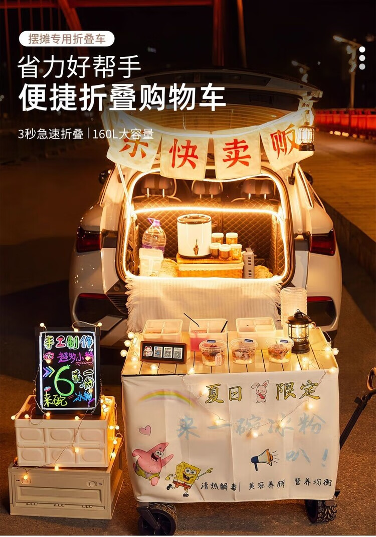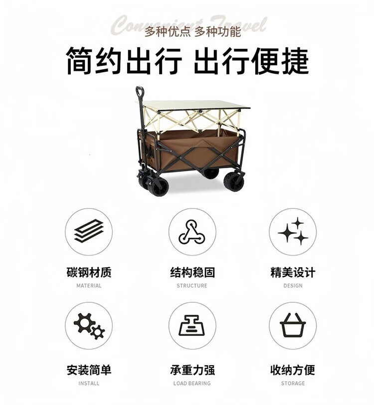 MPPMCK露营车折叠带桌板可坐人野餐车 营地车小号黑色