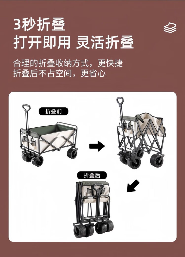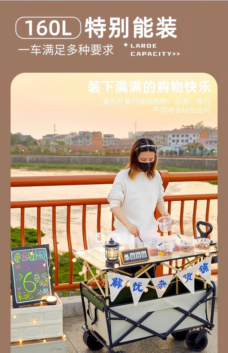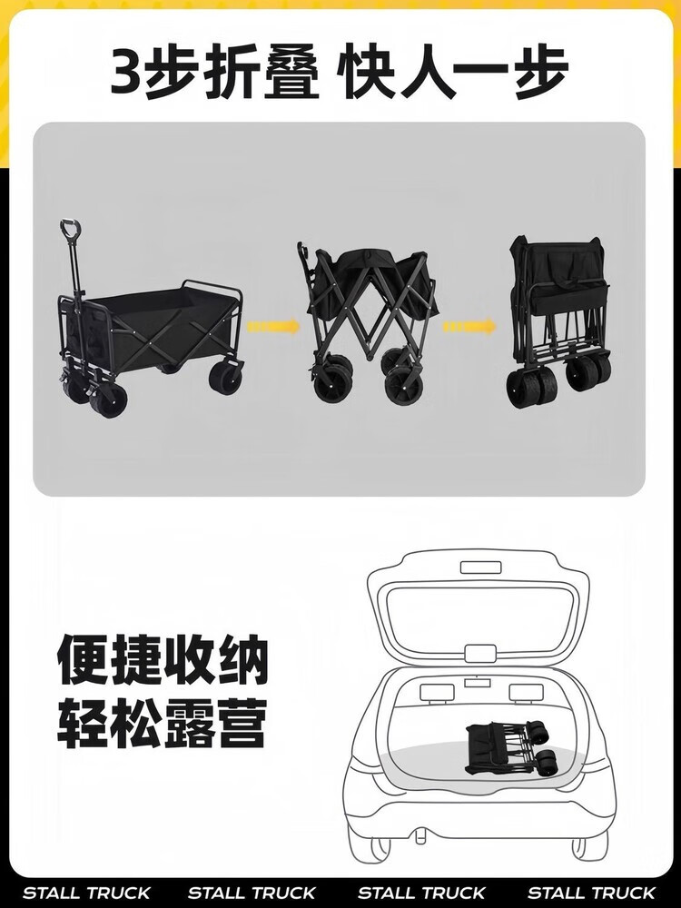 宰搂大容量户外露营小推车摆摊折叠小 经典雅黑大容量装载耐用万 36折叠椅可折叠黑色