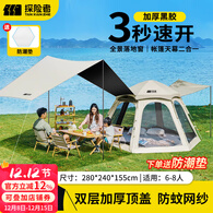 探险者帐篷户外露营便携天幕帐篷速开加厚黑胶防雨防晒全遮光野营装备 黑胶六面帐篷6-8人【天幕+防潮垫】