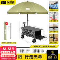 探险者露营车户外聚拢推车大容量快递车野餐车摆摊营地车便携野营旅行车 耀夜黑【后开越野款+桌板+大遮阳伞】