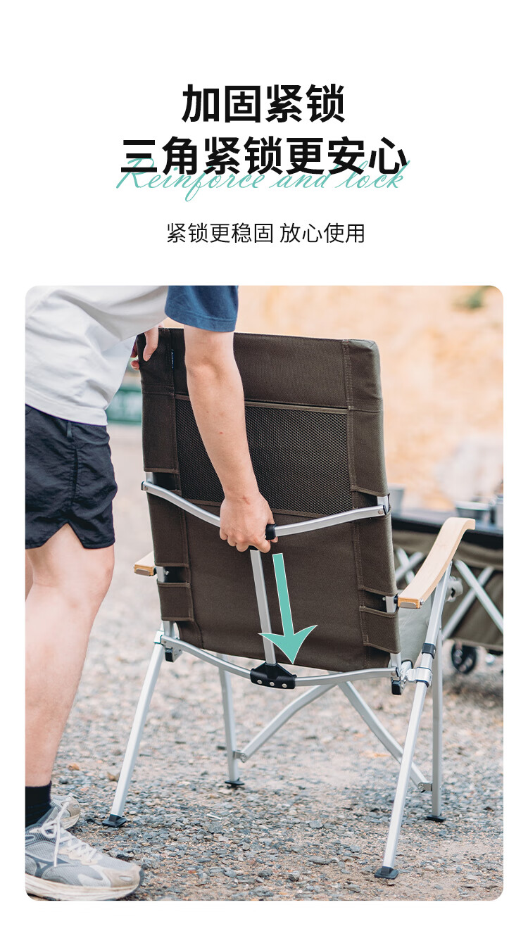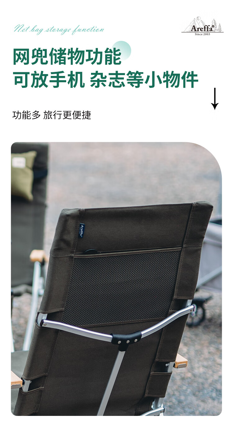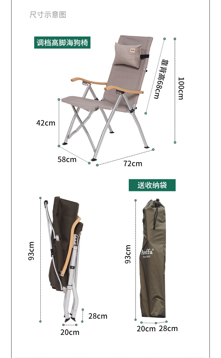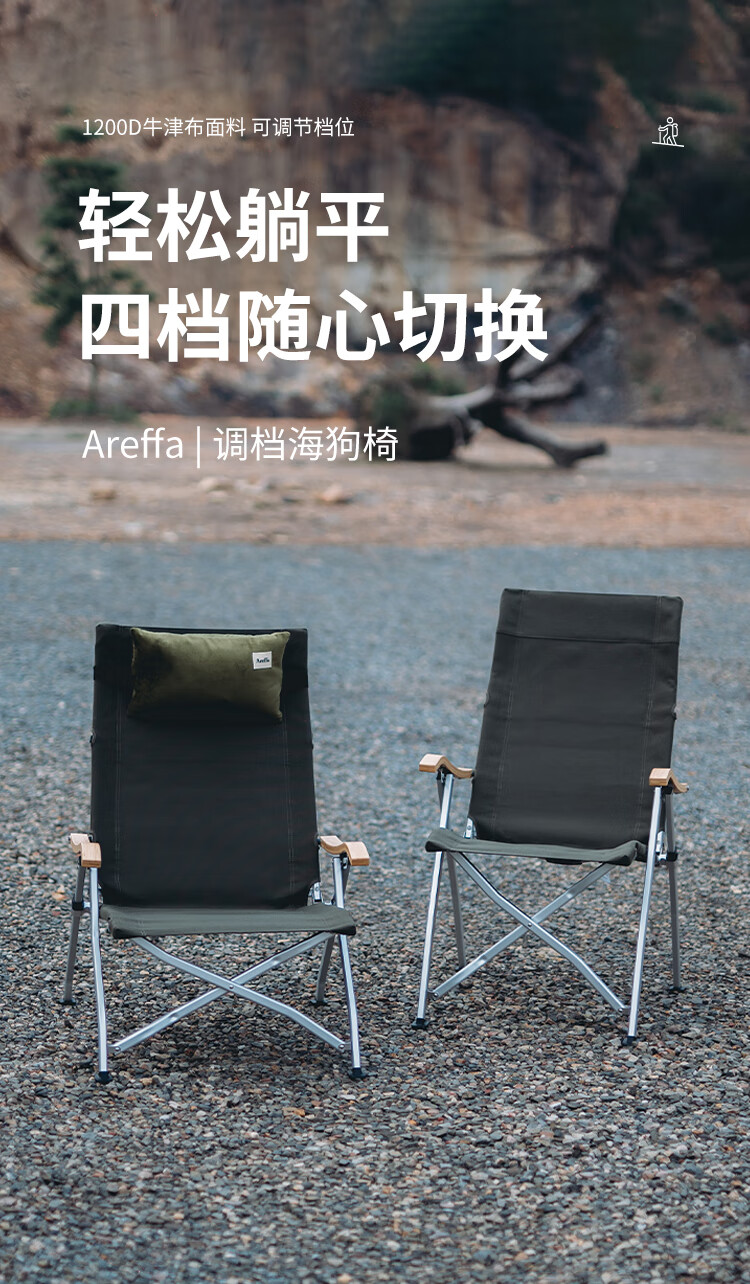 AREFFA铝合金户外折叠桌椅公园高背海狗椅露营沙滩椅子野餐便携轻便091 【军绿色】高背海狗椅 太空灰管